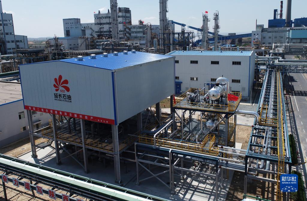 陕西延长石油榆林煤化有限公司的二氧化碳捕集装置(6月30日摄,无人机照片)。