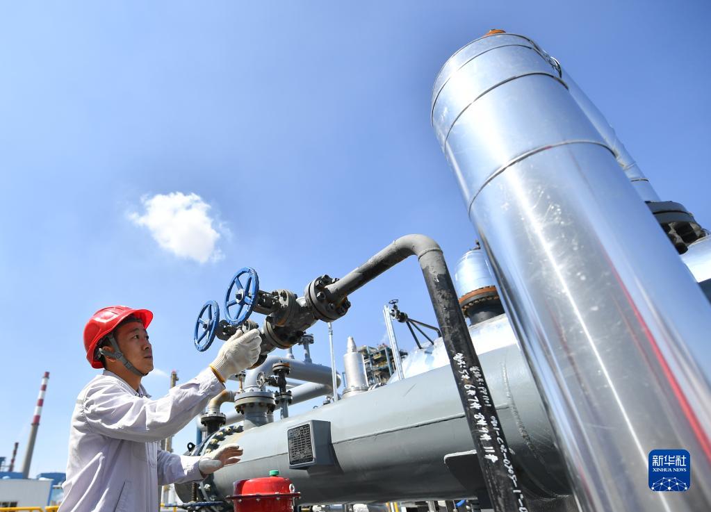 在陕西延长石油榆林煤化有限公司,工作人员查看二氧化碳捕集装置运行情况(6月30日摄)。