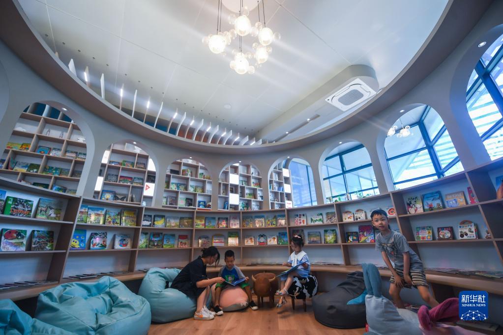 7月2日,孩子们在位于杭州市富阳区银湖街道硅谷社区的“合之舍”书房内看书。该书房是银湖街道“15分钟品质文化生活圈”的重要示范点位。