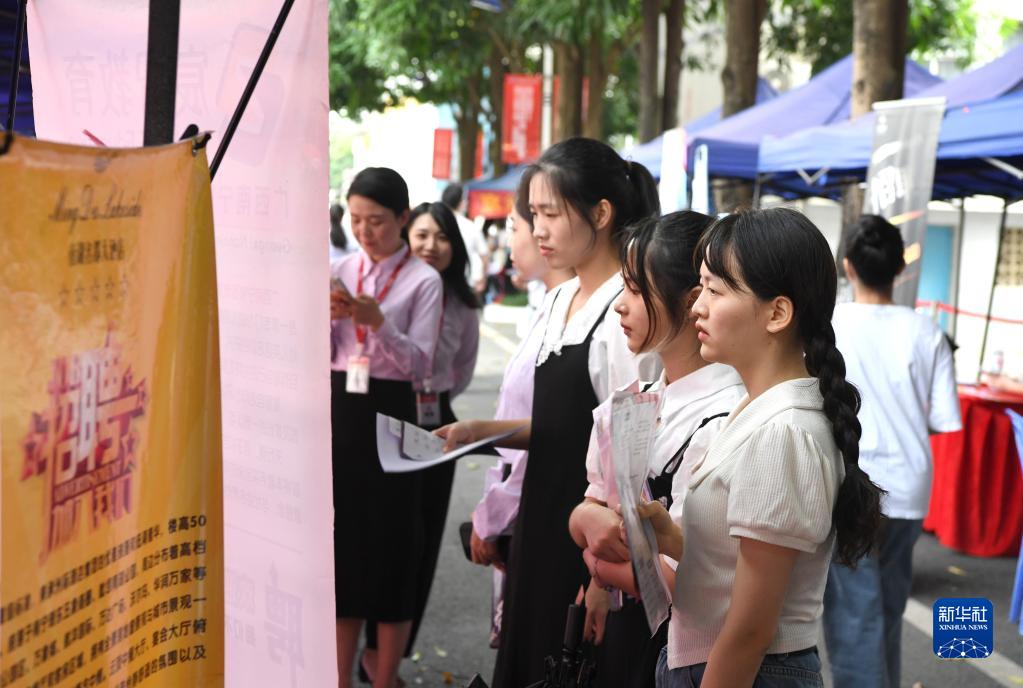 7月2日,广西国际商务职业技术学院学生在校园双选会上求职。