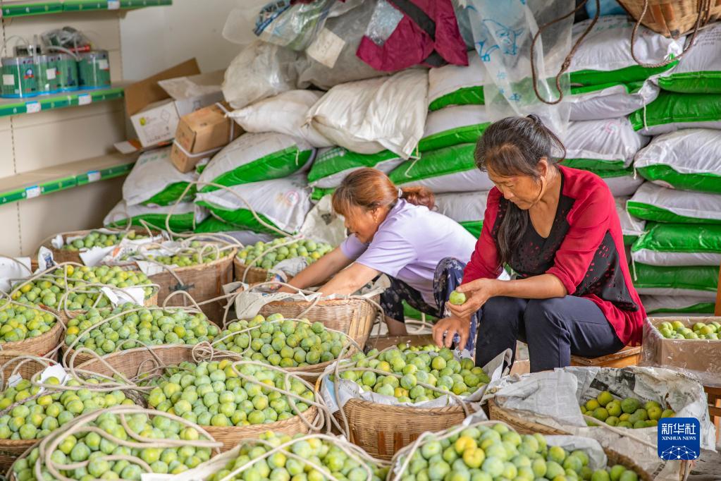 7月2日,在重庆市巫山县曲尺乡柑园村,村民对当天采摘的脆李进行分级挑选。