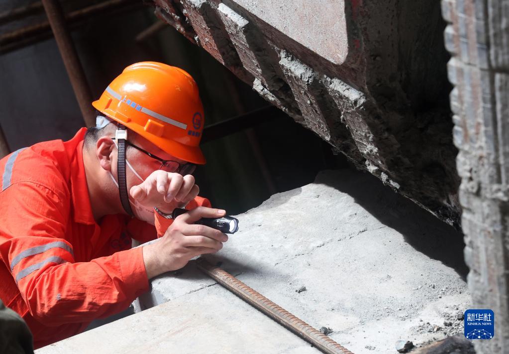 7月2日,孙杰查看盾构机轨道的情况。