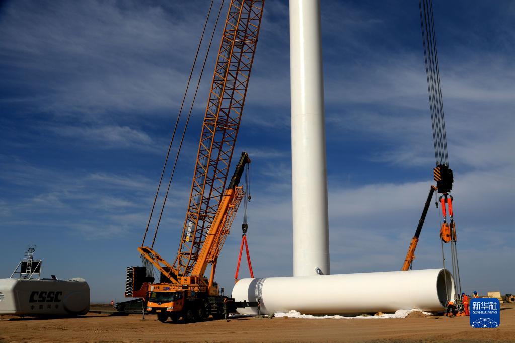 7月1日开始,甘肃敦煌海装北湖49.5兆瓦风电项目首台风机开始吊装。