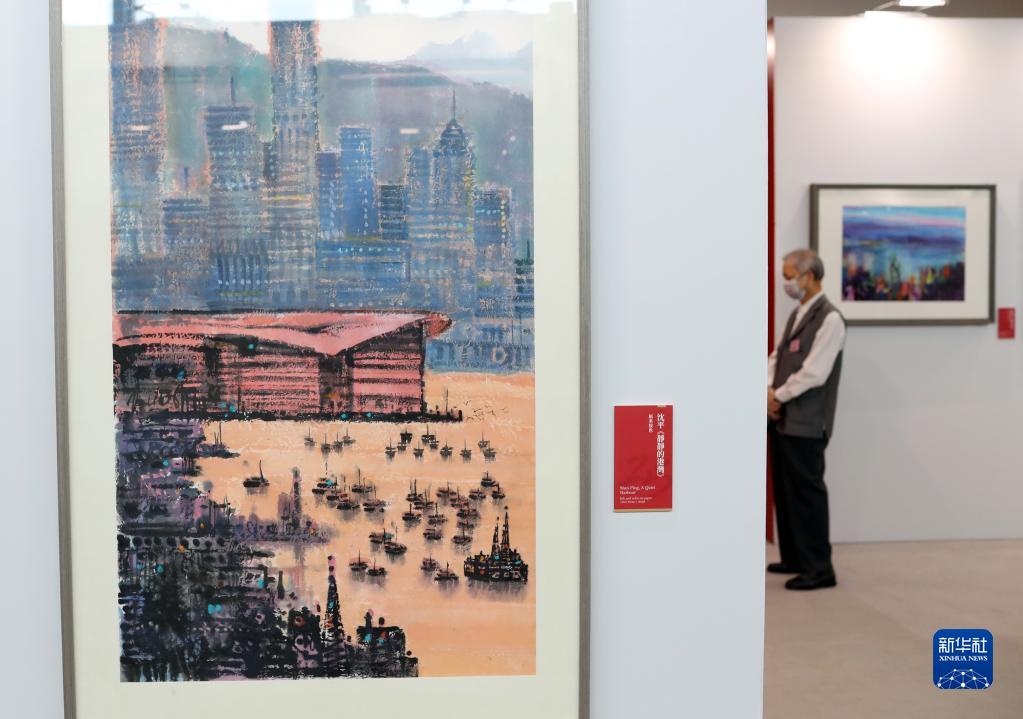 7月3日,一名参观者在展览现场观看作品。