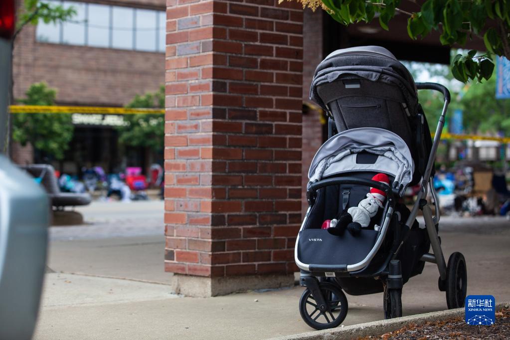 7月4日,一辆婴儿车被遗留在美国伊利诺伊州海兰帕克市的枪击现场。