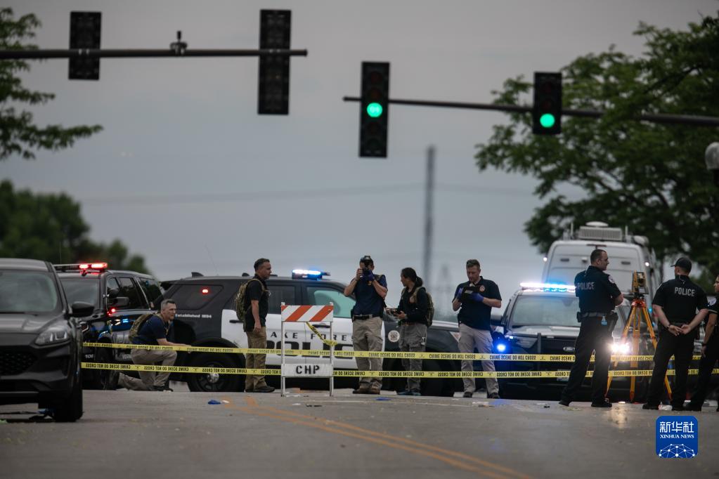 7月4日,警察在美国伊利诺伊州海兰帕克市的枪击现场取证调查。