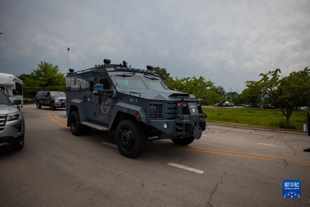 7月4日,一辆警车开往美国伊利诺伊州海兰帕克市的枪击现场。