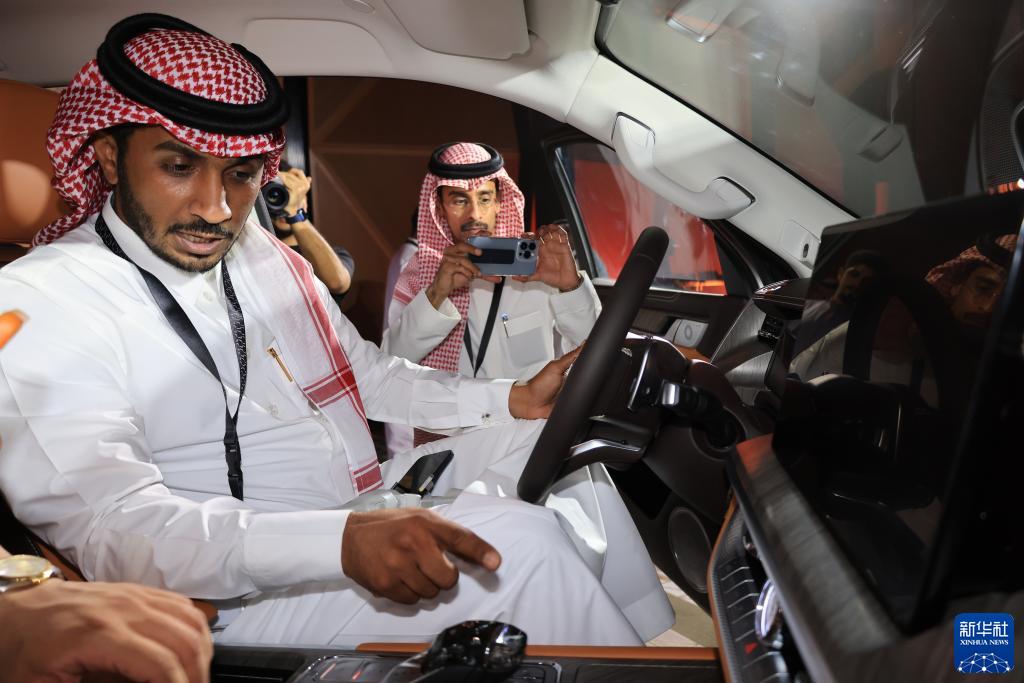 7月3日,在沙特阿拉伯首都利雅得的发布会上,人们体验、拍摄“坦克”品牌汽车。