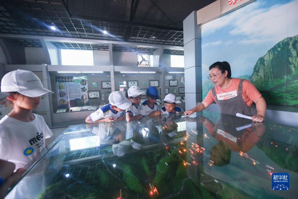 7月5日,参加科普夏令营的学生们在杭州市临安区昌化镇清凉峰科技馆参观,了解动植物知识。