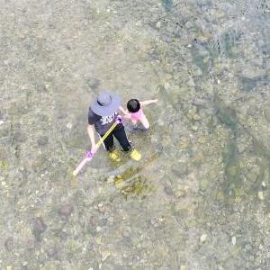 7月5日,小朋友在香纸沟景区内玩水。