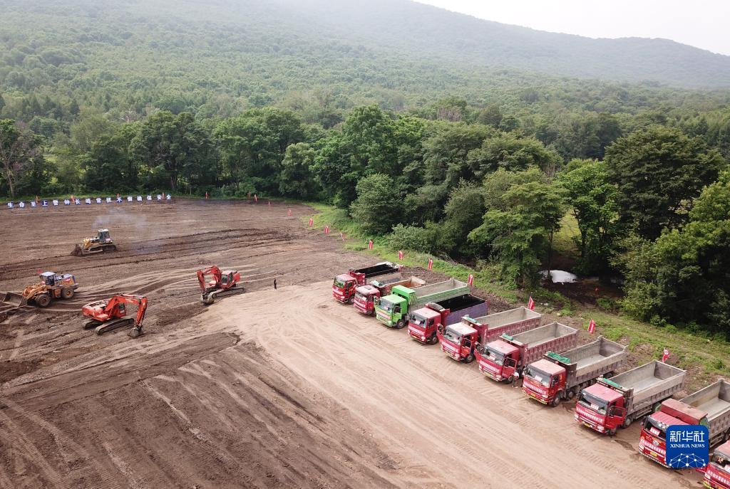 这是7月5日拍摄的国网黑龙江尚志抽水蓄能电站项目的一处施工现场(无人机照片)。