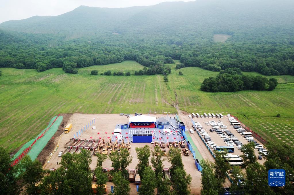 这是7月5日拍摄的国网黑龙江尚志抽水蓄能电站开工动员大会现场(无人机照片)。