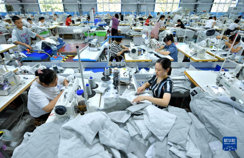 7月5日,工人在宣恩县高罗镇龙河村一服装厂车间里忙碌。