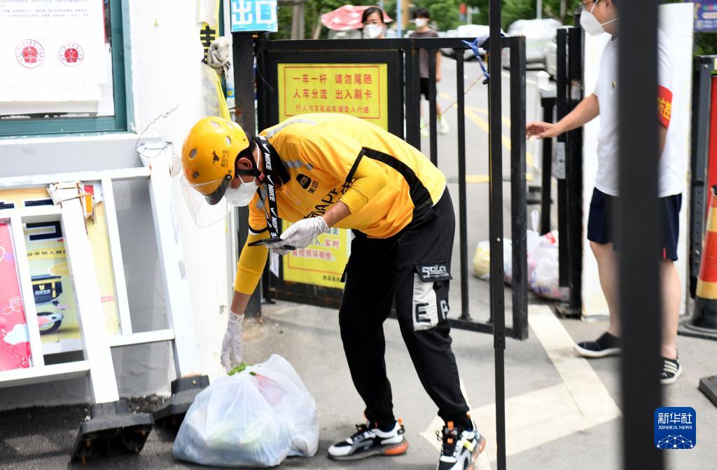 7月5日,谭章梦将顾客购买的物品放在小区门口。