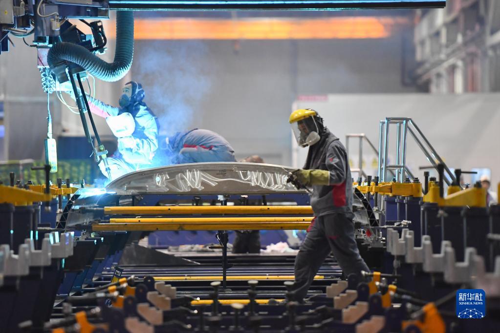 7月5日,在中车株洲电力机车有限公司车体事业部城轨车体车间,工人在生产线上作业。