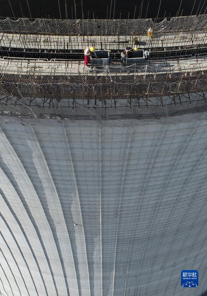 7月5日,建设者在间接空冷塔施工现场作业(无人机照片)。