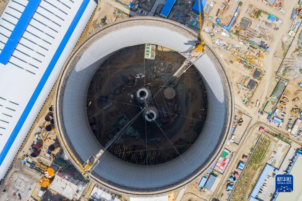 7月5日拍摄的间接空冷塔施工现场(无人机照片)。
