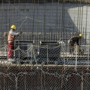 7月5日拍摄的间接空冷塔施工现场(无人机照片)。