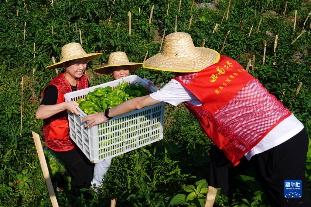 近日,西南大学开展暑期农村实践活动。该校大学生走进田间地头,帮助菜农采摘辣椒等蔬菜,感受丰收喜悦、体验劳动艰辛。