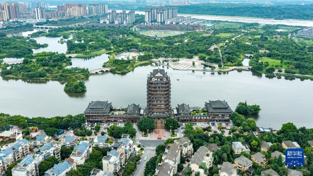 这是无人机拍摄的眉山市地标性建筑——远景楼(6月23日摄)。
