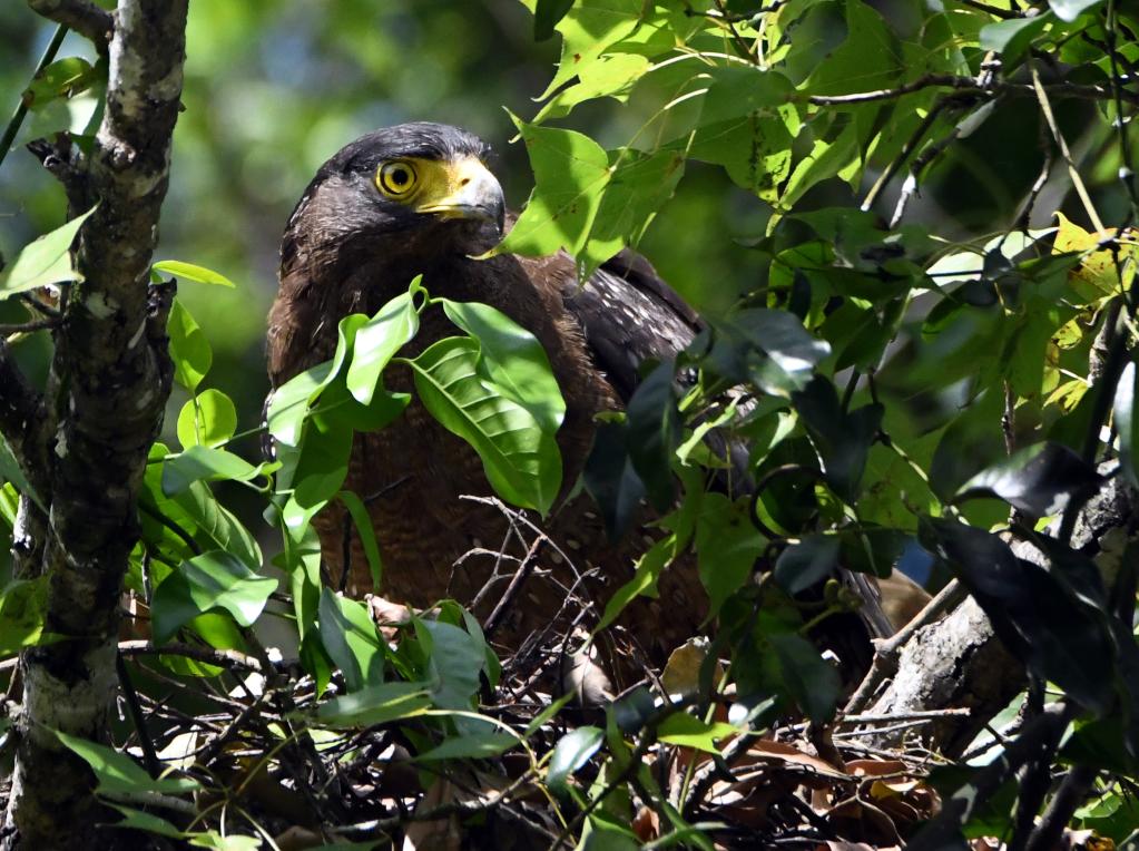 这是在巢中孵蛋的蛇雕(5月13日摄)。
