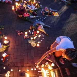 7月5日,在美国伊利诺伊州海兰帕克市,人们点燃蜡烛悼念“独立日”枪击案遇难者。