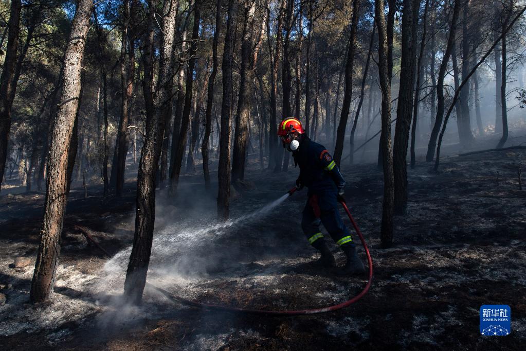 7月5日,消防员在希腊首都雅典西部郊区参加灭火行动。