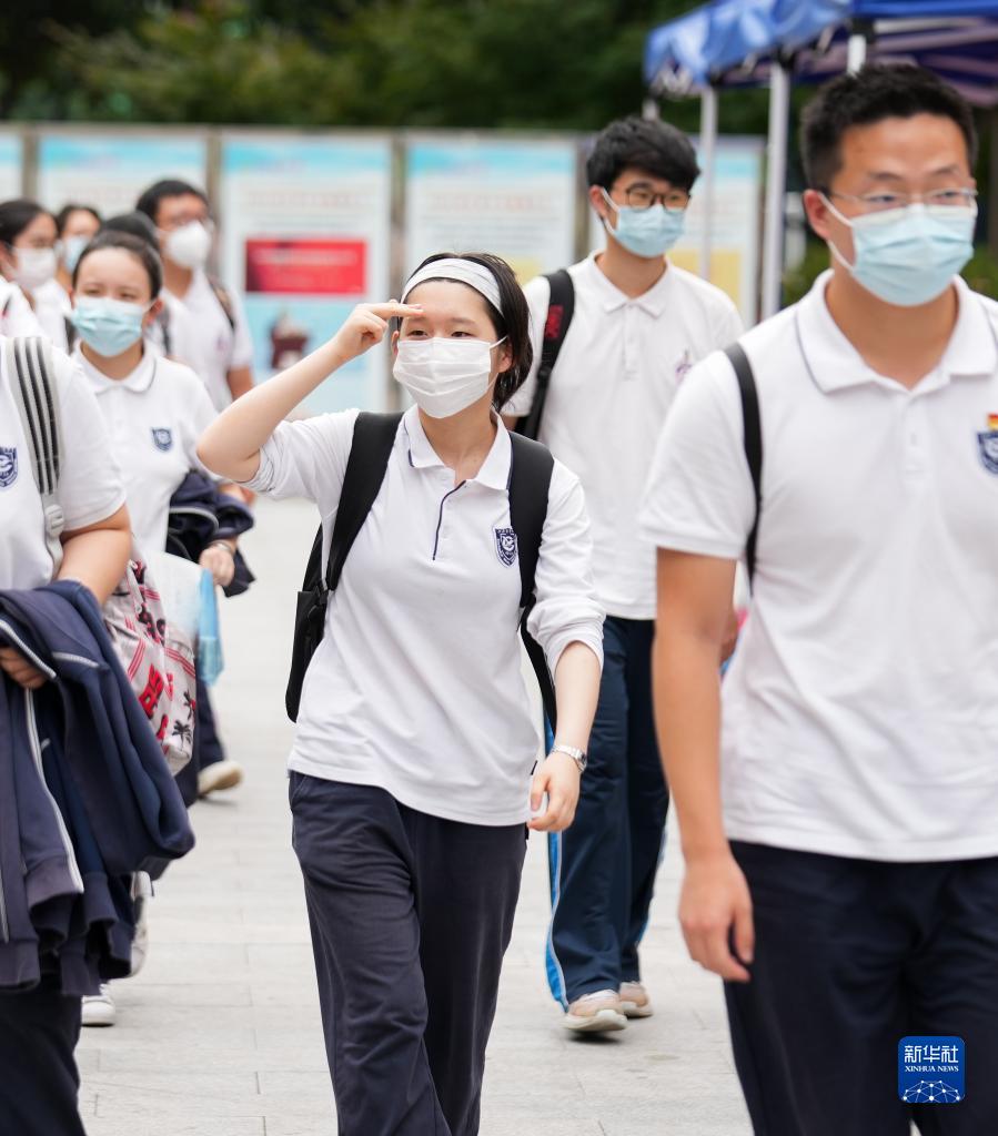 7月7日,在上海市徐汇中学考点,考生们在完成考试后走出考场。