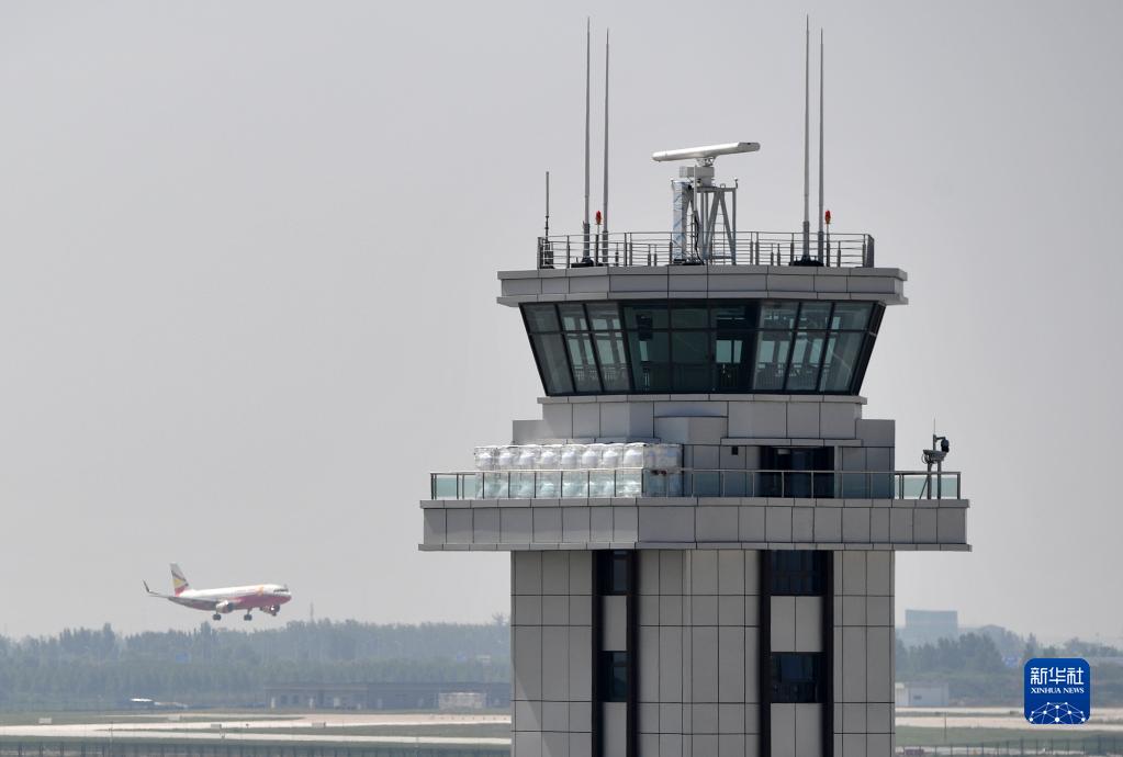 这是7月7日拍摄的郑州新郑国际机场三期扩建工程飞行区塔台。
