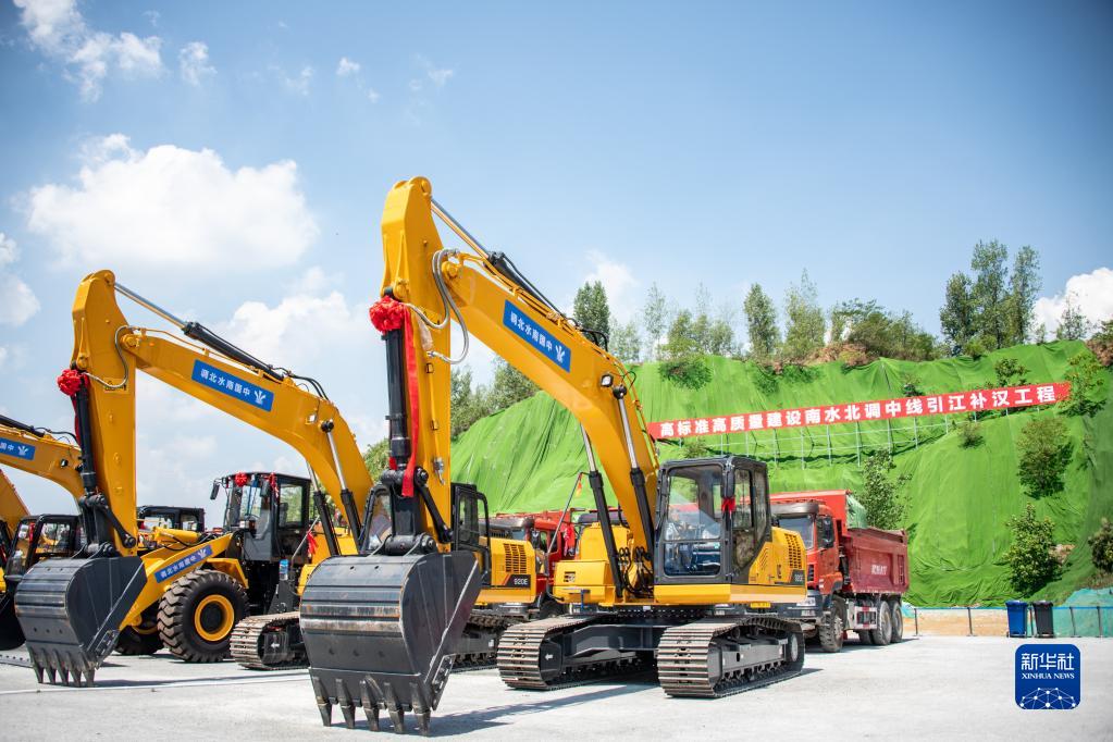 7月7日在引江补汉工程开工现场拍摄的施工机械。