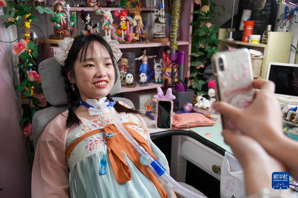 一身烂漫古风的衣裙,两条俏皮的辫子,向晨曦每天都准时出现在直播间里,与网友们热情地打着招呼。除了喉咙上插着的呼吸管显得格格不入,这名“90后”女孩与其他网络主播别无二致。