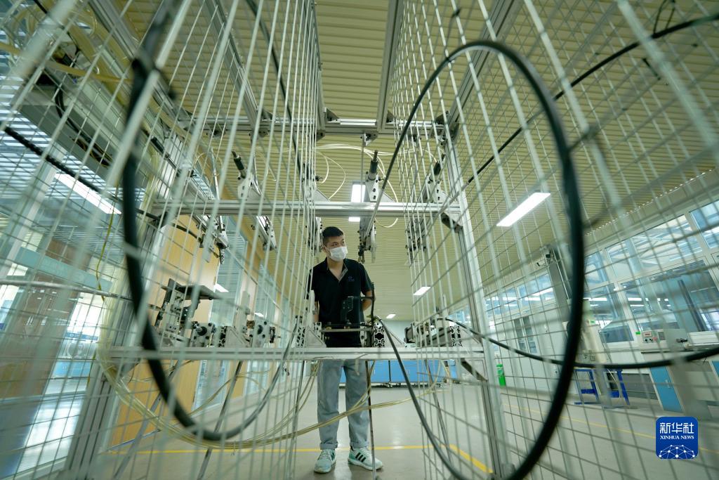 7月8日,河北亿利科技股份有限公司实验员马玉珍在测试汽车软轴的使用寿命。