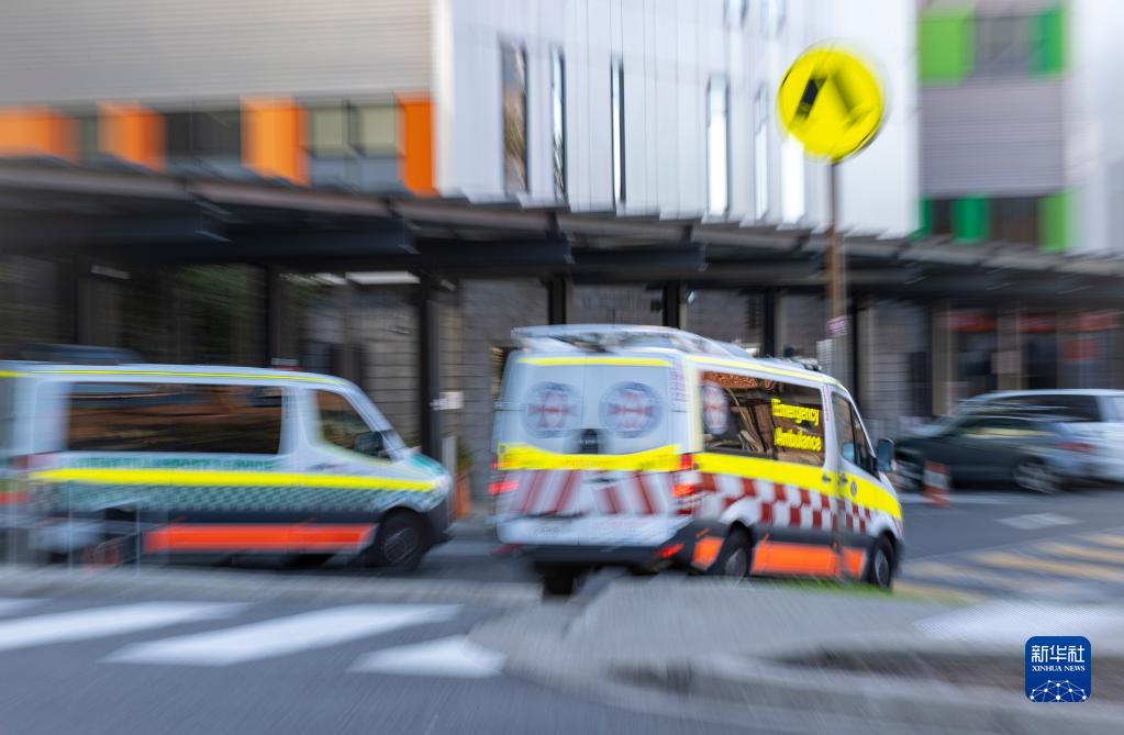 这是7月8日在澳大利亚悉尼拍摄的一所综合性医院门口停靠的救护车。