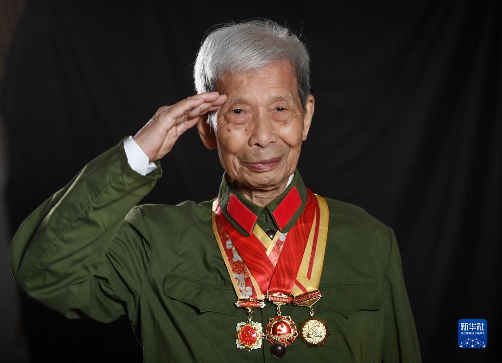 6月7日在广东省东莞市拍摄的抗战老战士王国华。 新华社记者 刘大伟 摄