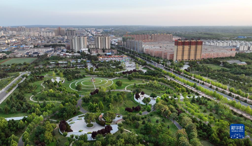 满眼绿色的合阳县城(7月8日摄,无人机照片)。