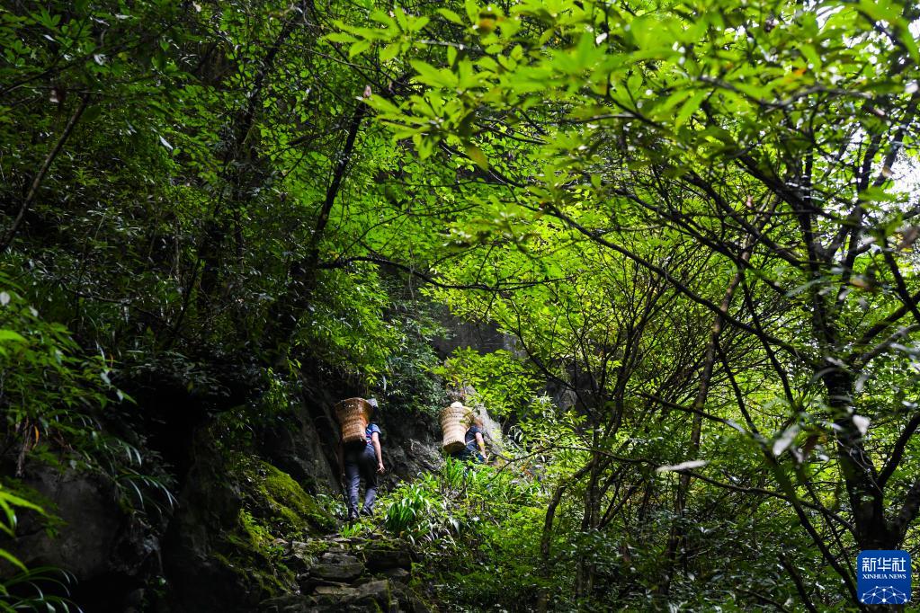 7月6日,工作人员行进在重庆五里坡国家级自然保护区内。