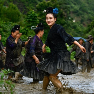 水鼓舞是贵州省剑河县苗族人民祭祀祖先、祈求风调雨顺与村寨平安的一种民间舞蹈,表演时集声、水、泥为一体,以其奔放的舞姿与深厚的文化内涵,展现出振奋人心的舞风和鼓韵。