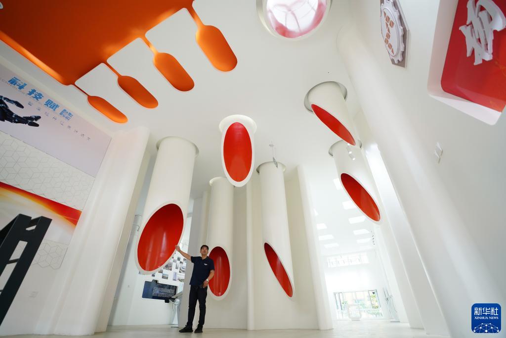 7月7日,在由原企业饲料车间改造成的牡丹江工业印象馆,工作人员在介绍情况。新华社记者 王建威 摄