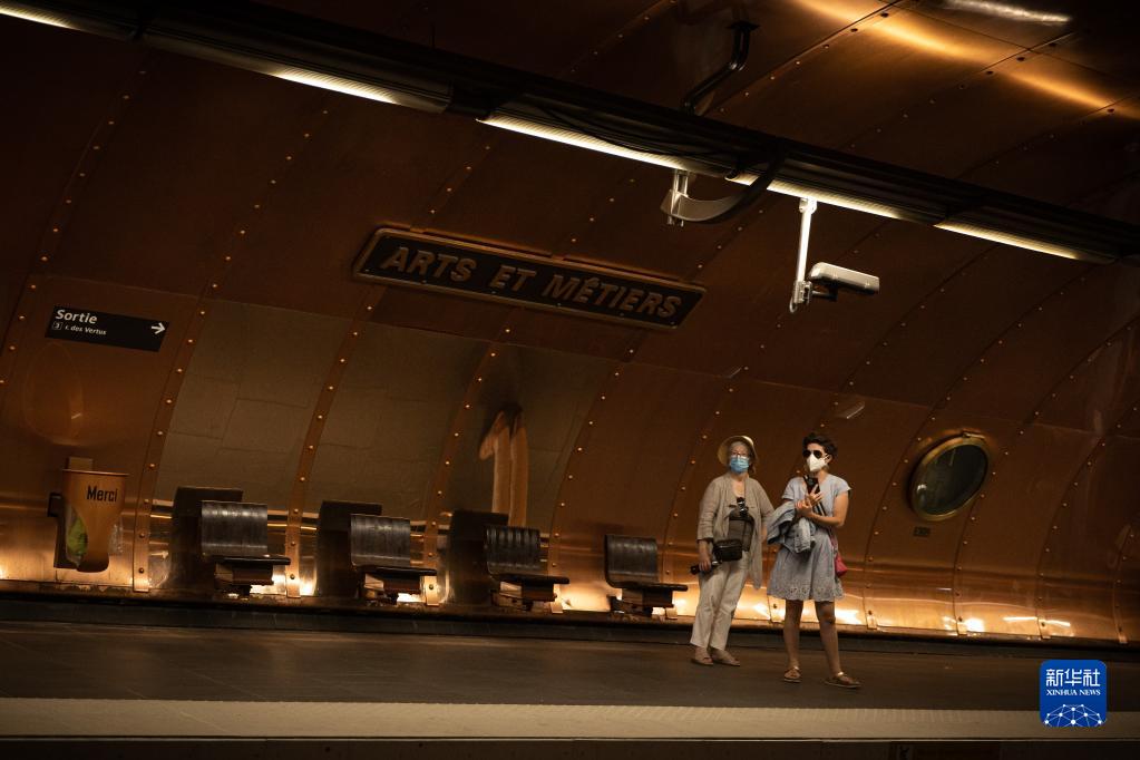 7月8日,人们佩戴口罩在法国巴黎等地铁。
