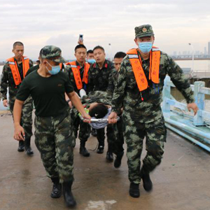 经95110海上报警服务平台接警,山东海警局执法员救援海上受伤群众(2022年4月1日摄)。新华社发(彭智超 摄)