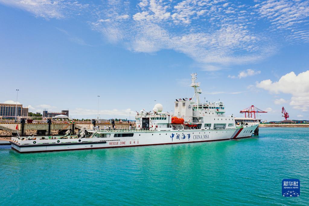 这是7月11日拍摄的停靠在平潭海事监管基地的“海巡06”轮(无人机照片)。 新华社发