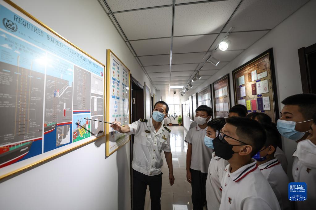 7月11日,大连湾宋家小学的学生代表在辽宁海事局船员考试中心学习航海相关知识。