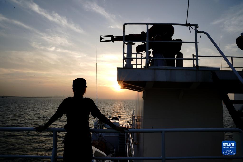 6月21日,詹春珮在“海巡01”轮上眺望长江口。