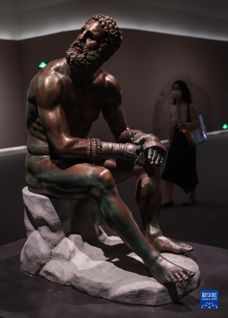 7月11日,参观者走过展品“休息中的拳击手”。 新华社记者 张玉薇 摄
