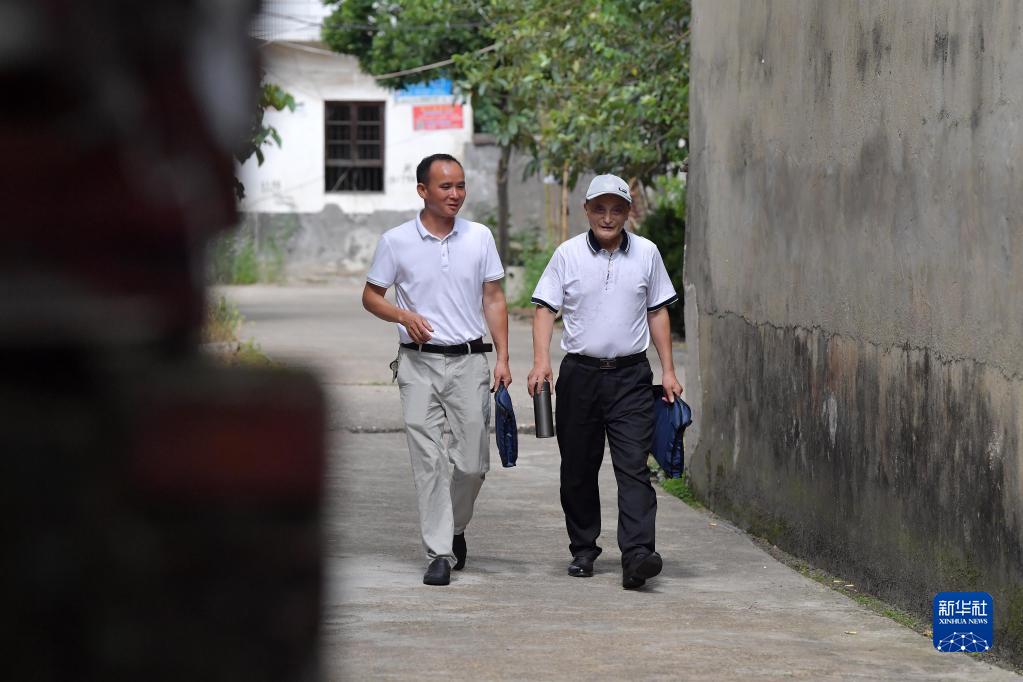 在江西省乐平市镇桥镇坑口村,程雪清准备去烈士黄万生的亲属家走访(7月6日摄)。