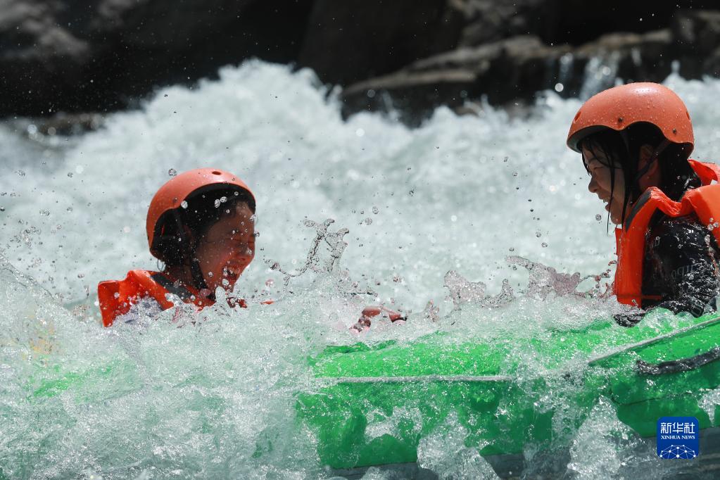 7月12日,游客在湖北省宜昌市秭归县九畹溪景区漂流。