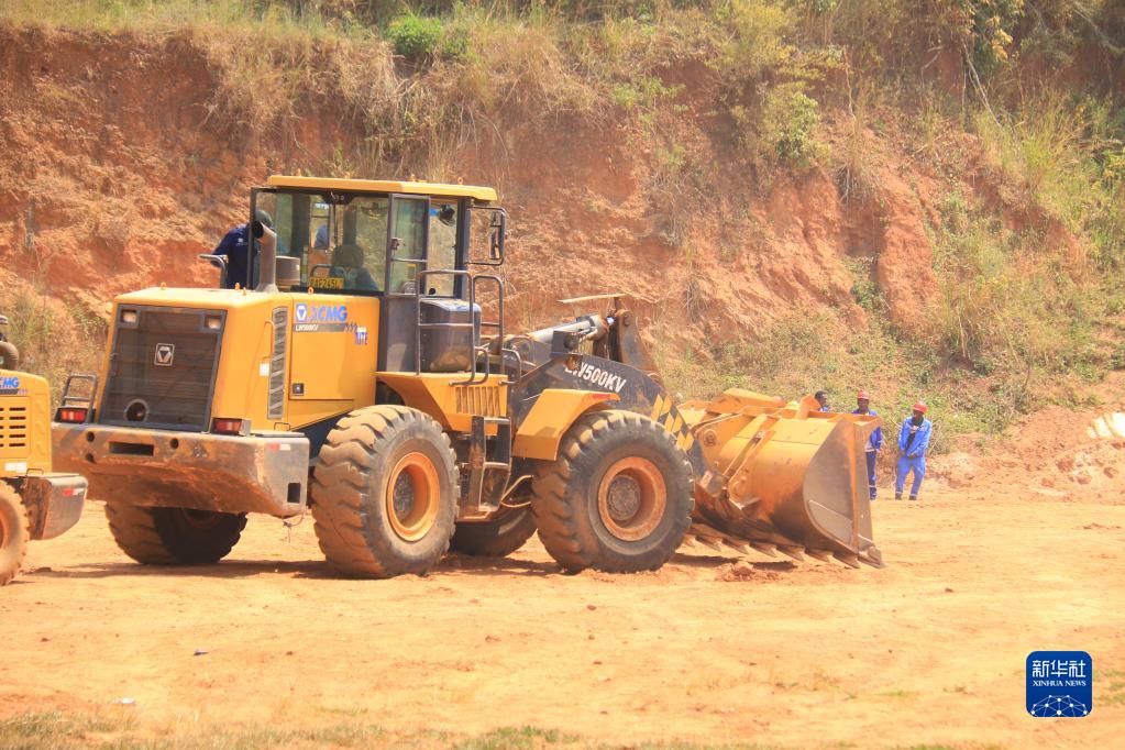 7月8日,在卢旺达首都基加利的恒华职业技术学院,学生观摩重型机械的操作。