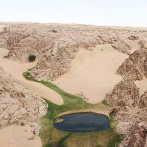 阿拉善大漠天池景区位于内蒙古自治区阿拉善盟阿拉善右旗阿拉腾敖包镇巴彦塔拉嘎查,地处腾格里沙漠与巴丹吉林沙漠交汇处。该景区内的大漠天池为世界罕见的沙漠堰塞湖,风光独特,引人入胜。