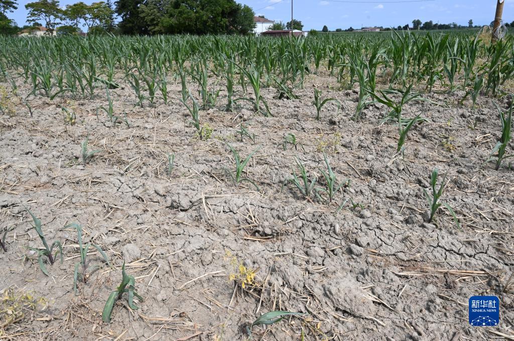 这是7月12日在意大利伦巴第大区曼托瓦拍摄的因干旱受损的作物。