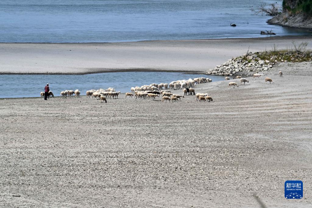 7月12日,在意大利伦巴第大区曼托瓦,牧民在波河附近放羊。